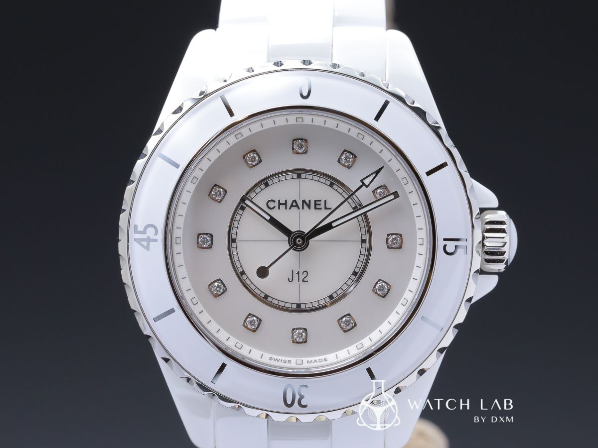 J12 白陶瓷女錶|貝殼面| H5704 33mm 石英錶 鑽石刻度