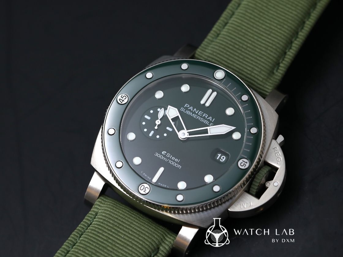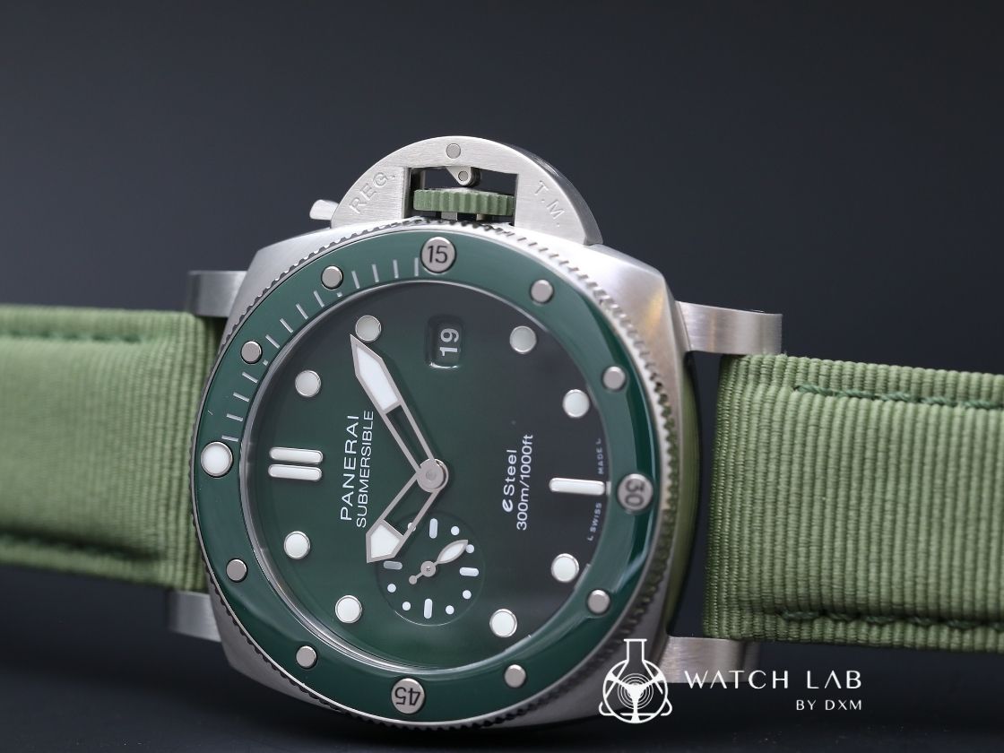 Luminor Submersible QuarantaQuattro eSteel™ Verde Smeraldo PAM1287 44mm 放射綠面 潛水錶系列 尼龍錶帶