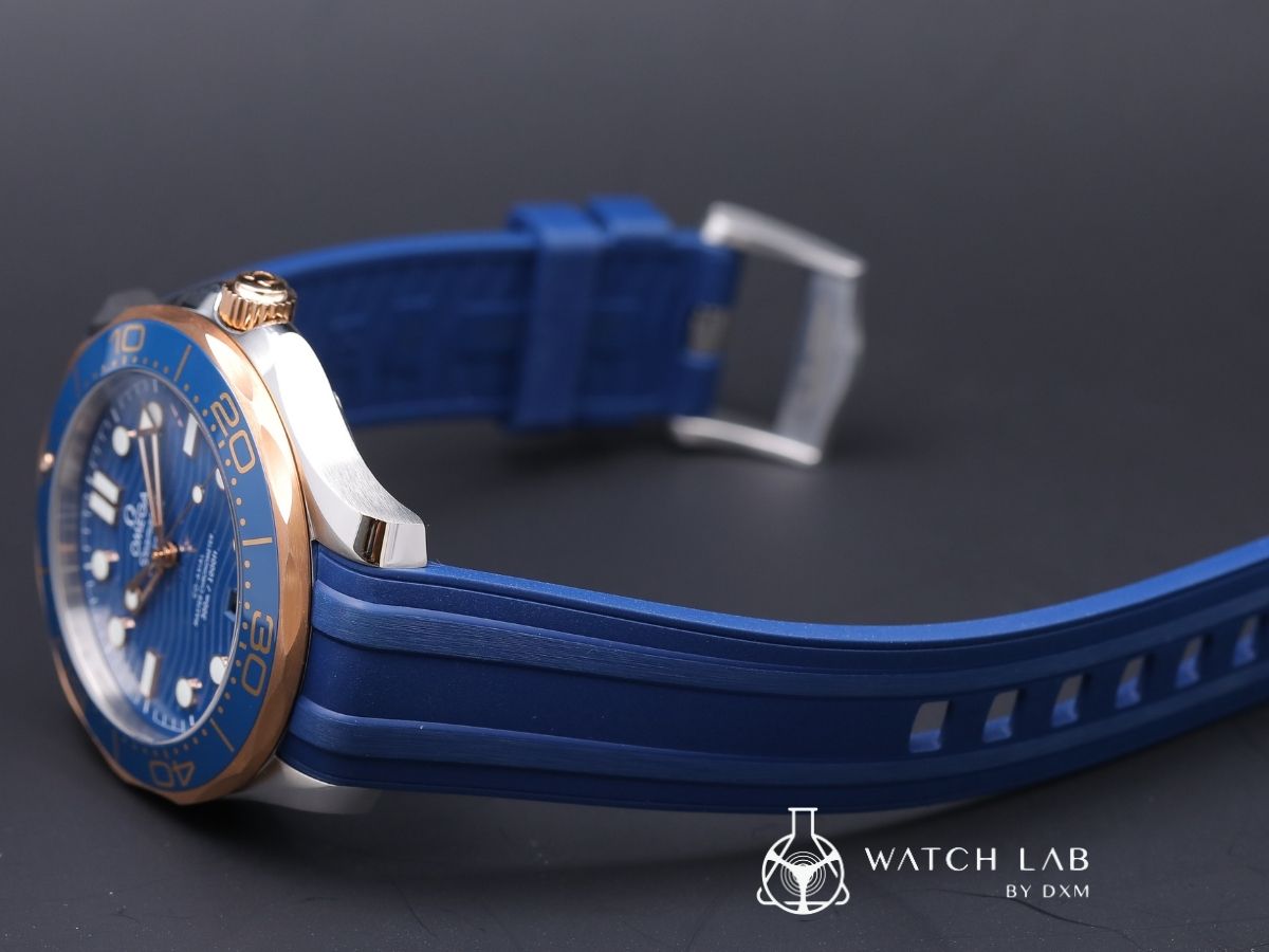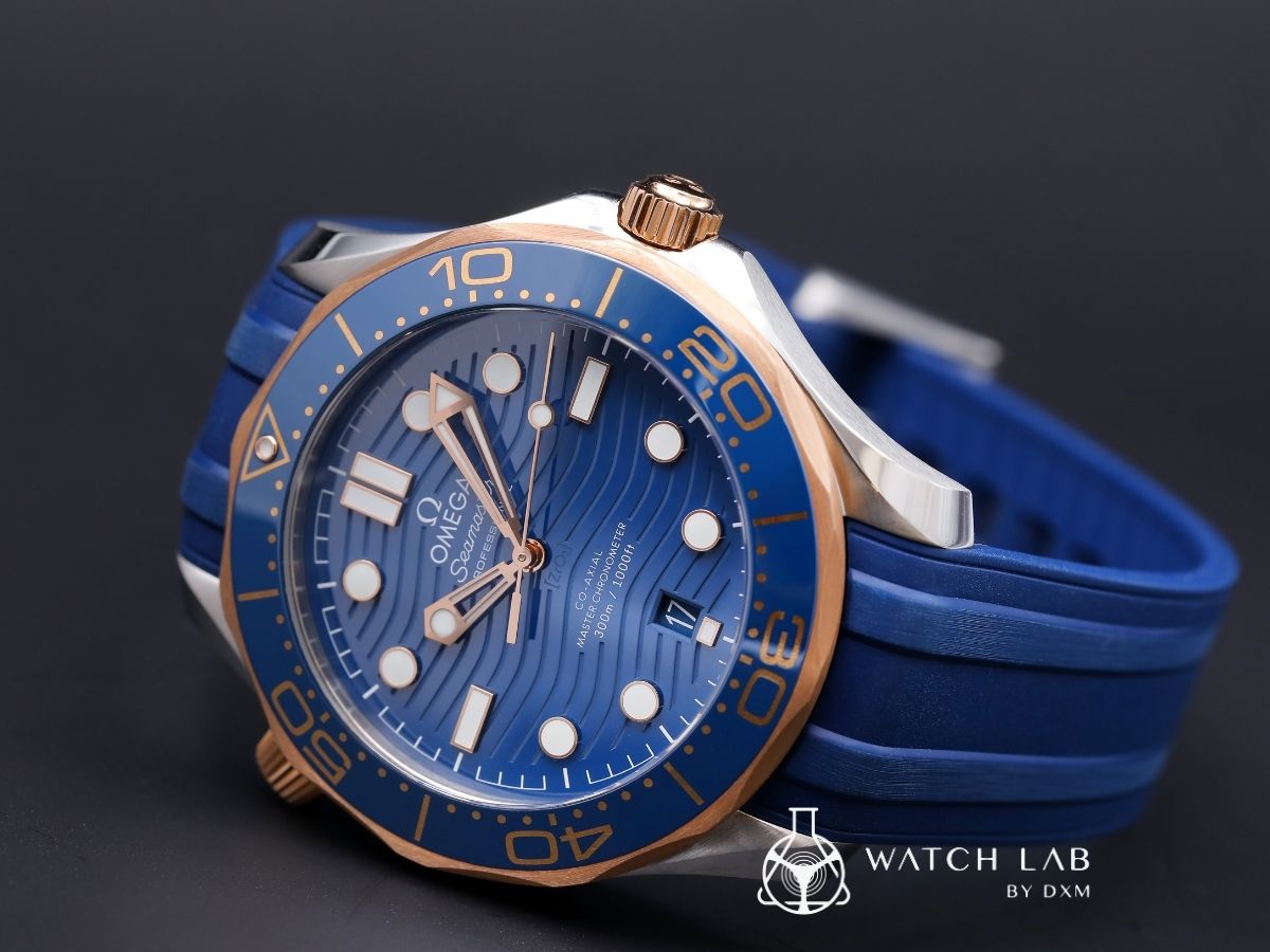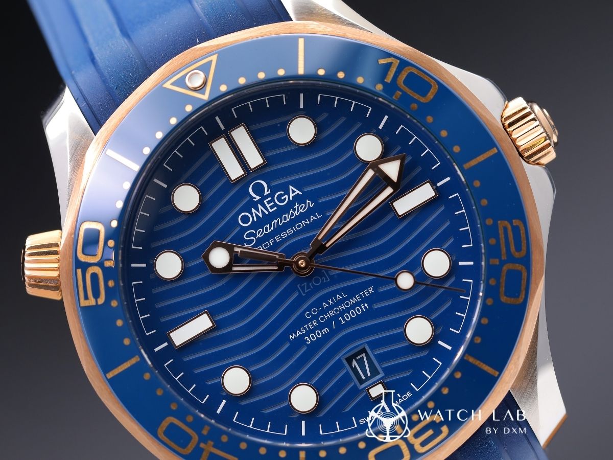 材質: 不鏽鋼及18K 歐米茄專利Sedna金/配備設有Ceragold™瓷金潛水刻度⁠的藍色陶瓷錶圈⁠