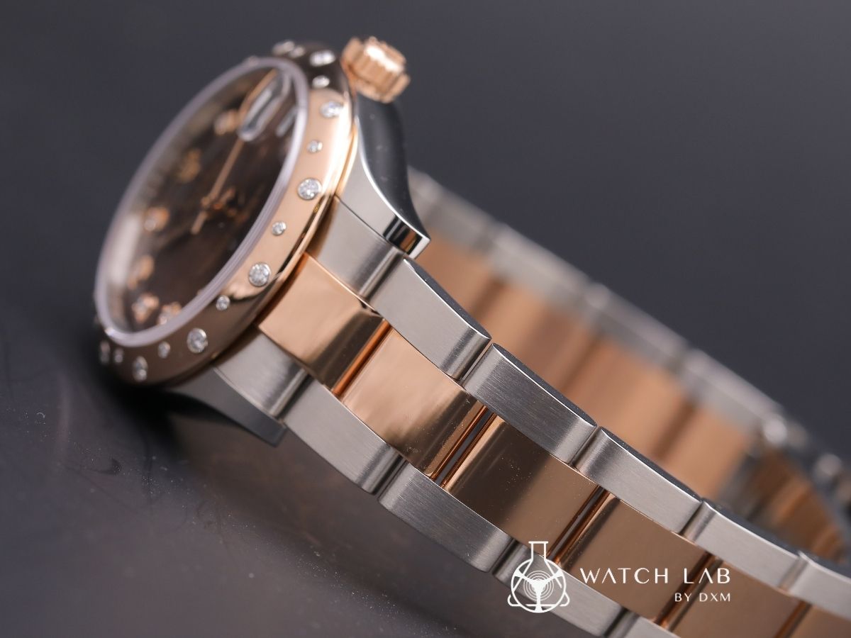 面盤: 巧克力色錶面刻度鑲鑽/蠔式(Oyster)錶帶/永恆玫瑰金泡泡鑽石