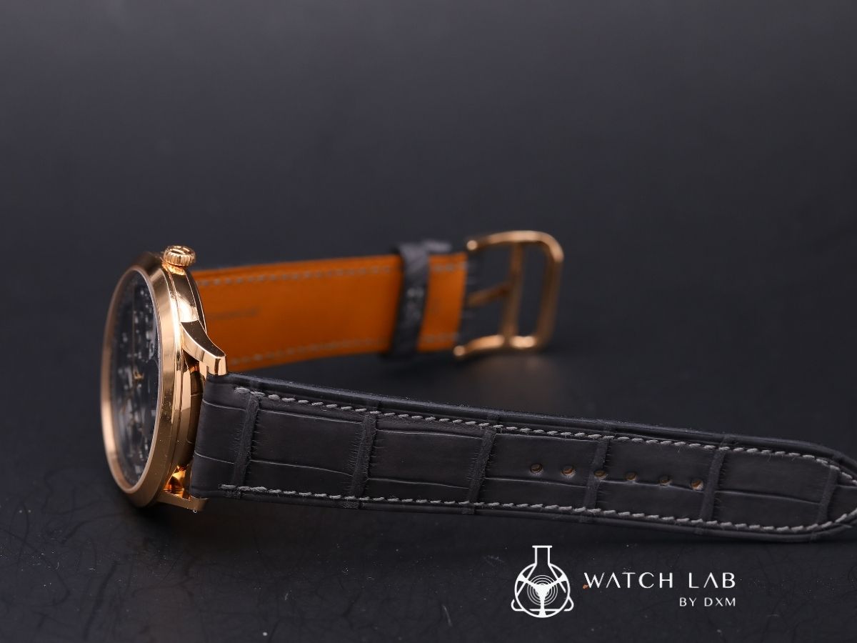 材質: 18k玫瑰金錶殼/霧面石墨色短吻鱷魚皮錶帶/玫瑰金針釦