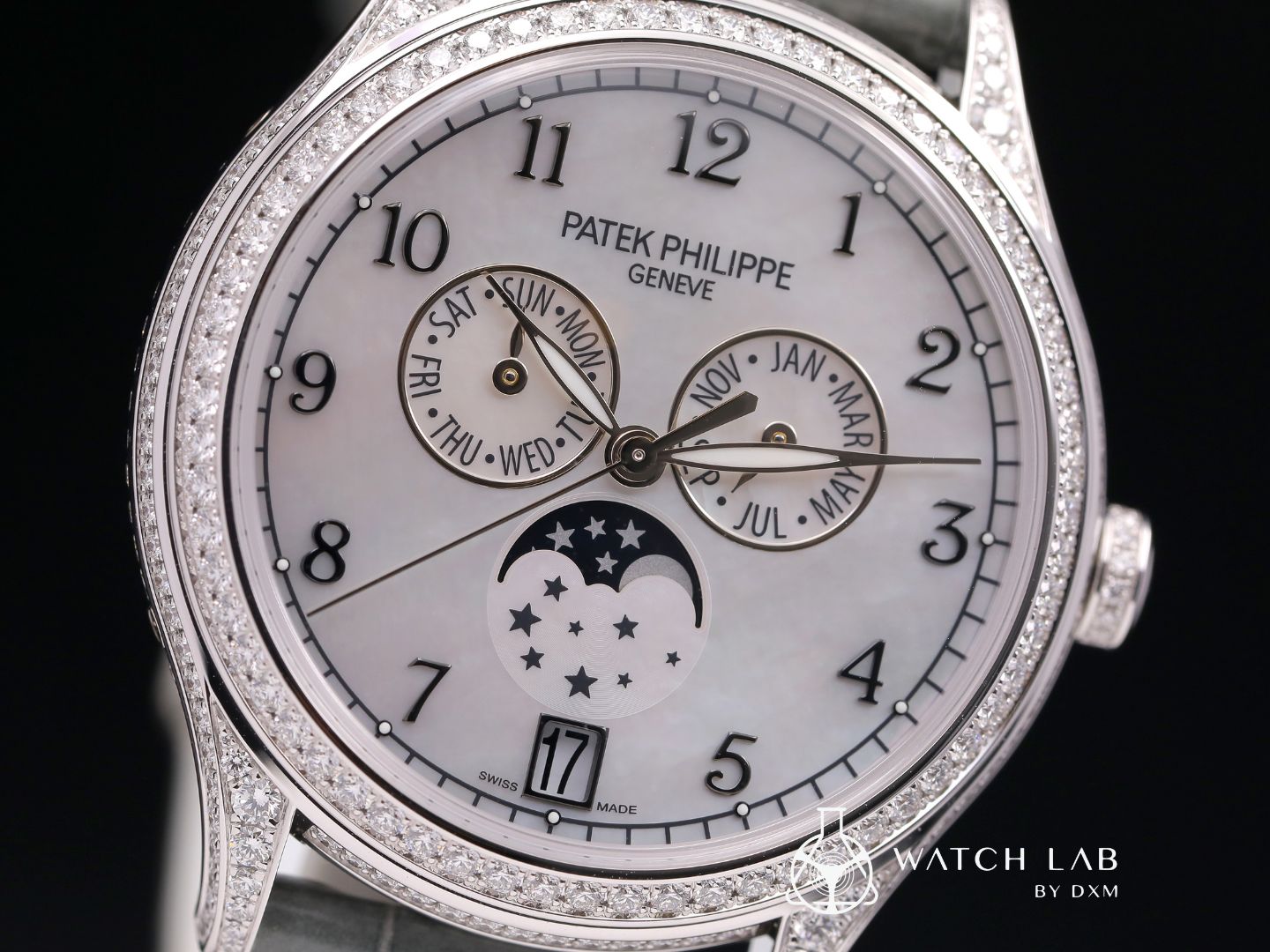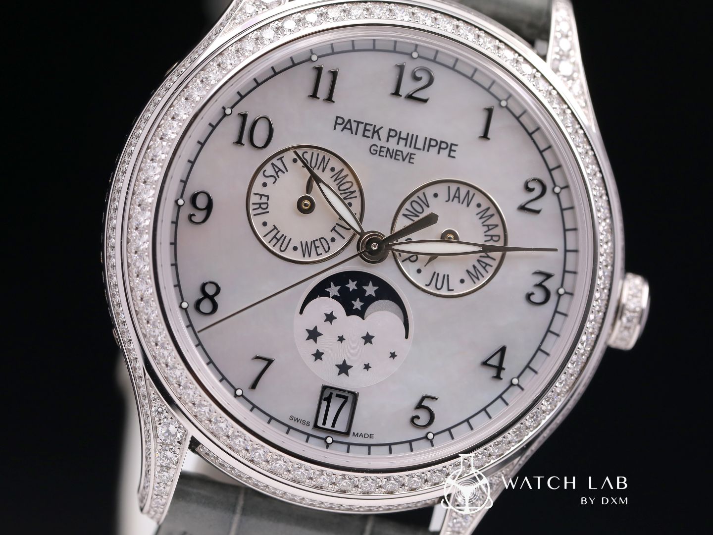 複雜功能時計系列 4948G-010 月相 星期 日期 貝殼鑲鑽錶面 文錶女錶